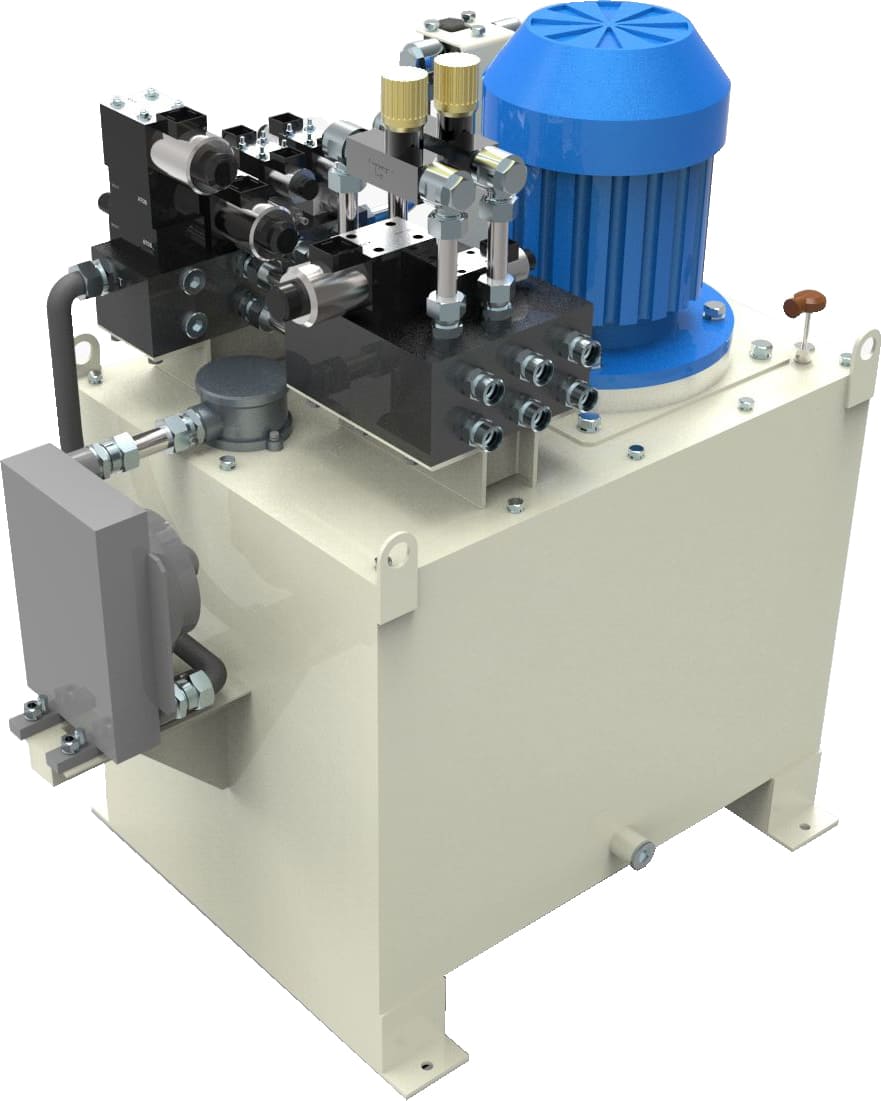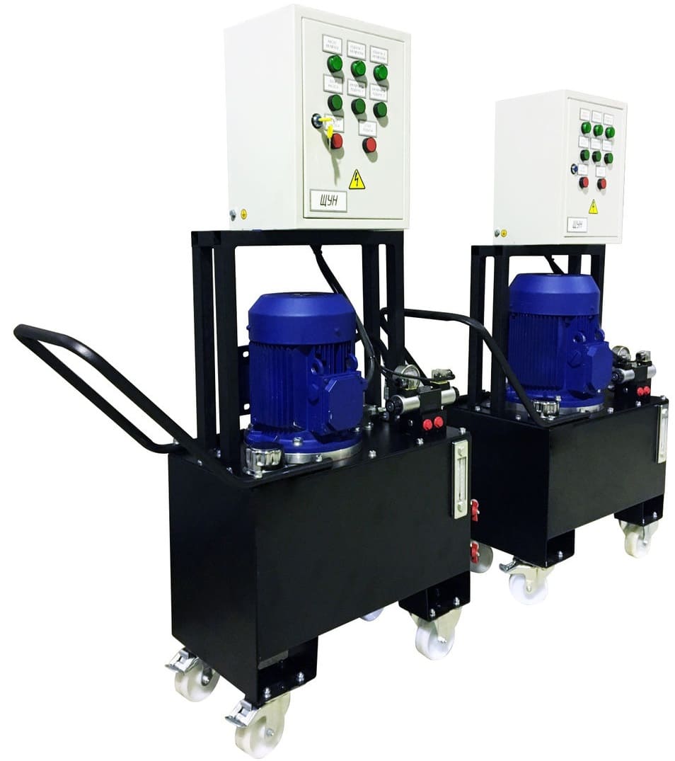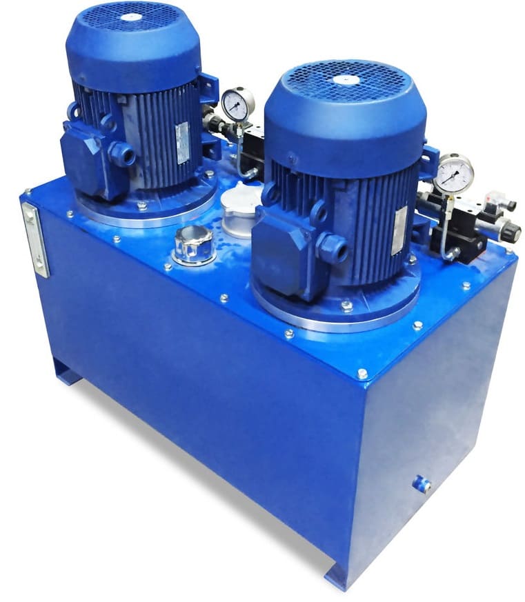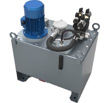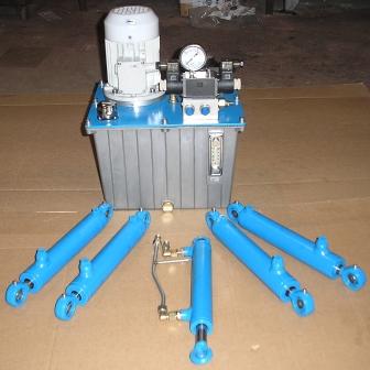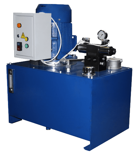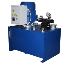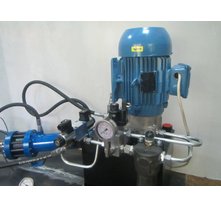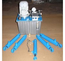 Гидростанции для гидроцилиндров обеспечивают работу механизмов, приводимых в действие силовыми гидроцилиндрами на производствах, в строительно-дорожной и нефте-газовой отраслях, испытательных стендах и др. областях. Насос подает масло в полости толкающих, тяговых, плунжерных и телесокопических гидроцилиндров, давление которого определяет усилие штока. Величина подачи определяет скорость перемещения штока, которую можно изменять регулятором расхода или дросселем. Управление гидроцилиндрами выполняется трехпозиционными распределителями. Датчик давления, позволяет точно контролировать усилие.