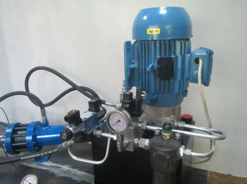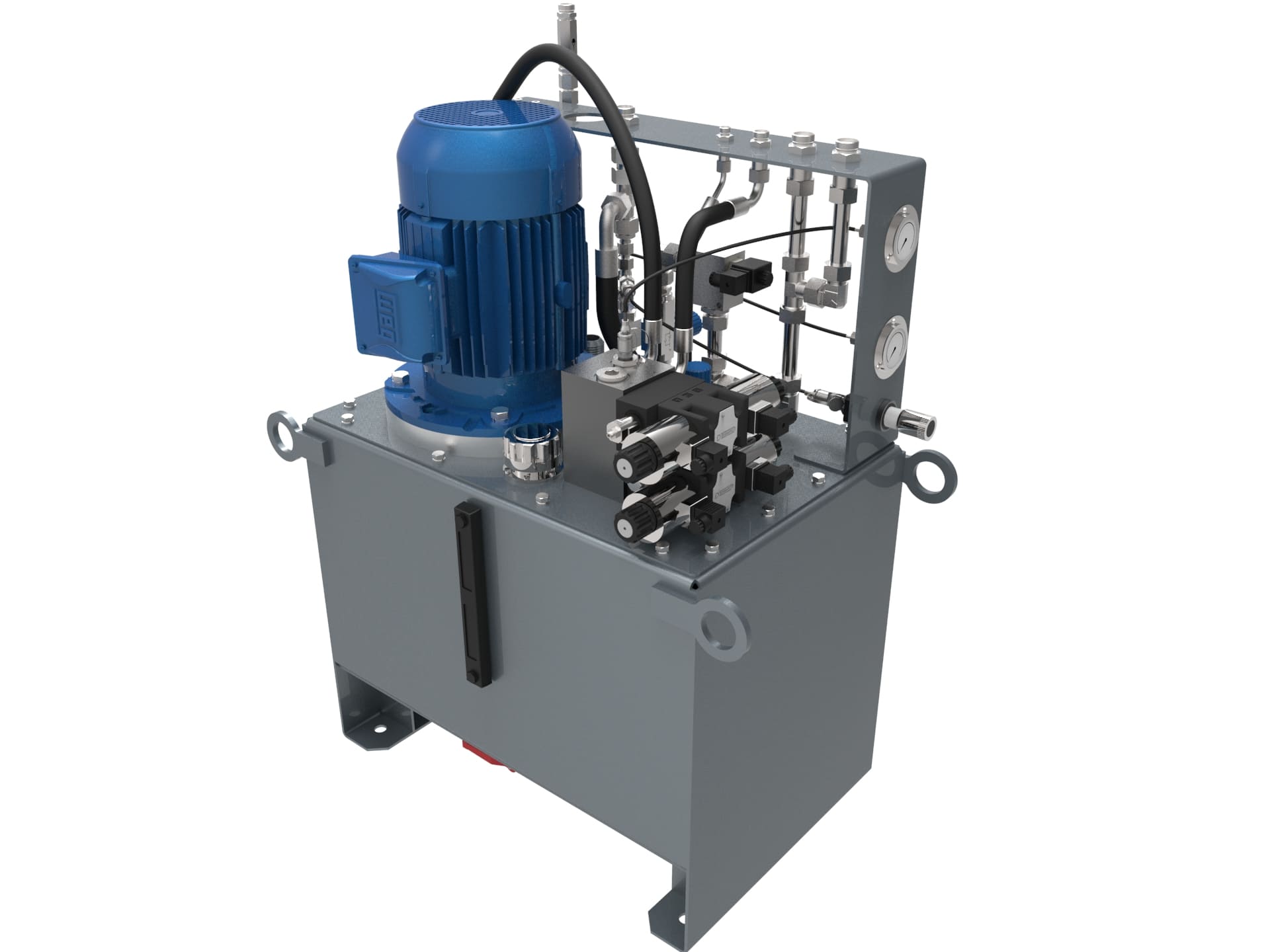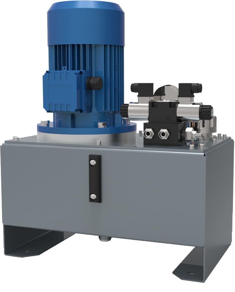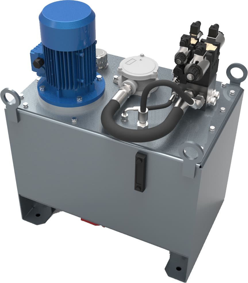 Гидростанции для гидроцилиндров обеспечивают работу механизмов, приводимых в действие силовыми гидроцилиндрами на производствах, в строительно-дорожной и нефте-газовой отраслях, испытательных стендах и др. областях. Насос подает масло в полости толкающих, тяговых, плунжерных и телесокопических гидроцилиндров, давление которого определяет усилие штока. Величина подачи определяет скорость перемещения штока, которую можно изменять регулятором расхода или дросселем. Управление гидроцилиндрами выполняется трехпозиционными распределителями. Датчик давления, позволяет точно контролировать усилие.