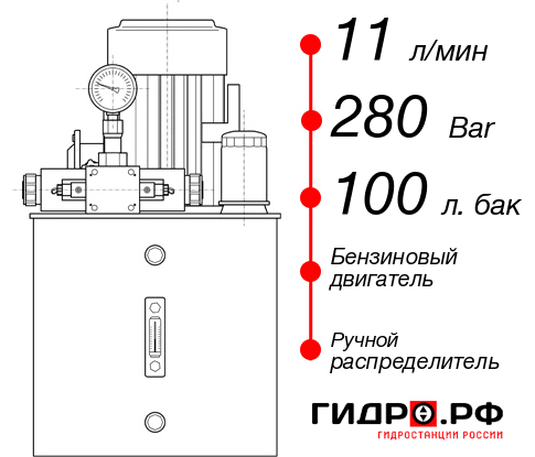 Гидравлическая станция НБР-11И2810Т с потоком 11 л/мин и давлением 280 кг/см2. Установлен бензиновый мотор и бак на 100 литров. Распределитель гидравлический ручной. Цена по прайсу с доставкой до адреса в Великом Новгороде 177944 руб. Рекомендуемая комплетация: удержание давление гидрозамком, электрическая коробка управления, частотное регулирование подачи.