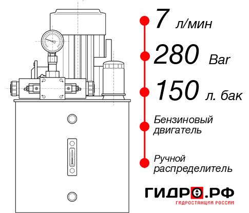 Маслостанция НБР-7И2815Т с давлением 280 бар и гидравлическим контуром 7 литров в минуту. Установлен бак на 150 л и бензиновый мотор. Цена по прайсу с доставкой до адреса в Великом Новгороде 180525 руб. Рекомендуемая комплетация: дополнительные краны на выходе, гидрозамок на выходных портах, контроль давления в выходных магистралях, вспомогательный ручной насос, обратный клапан на выходе.