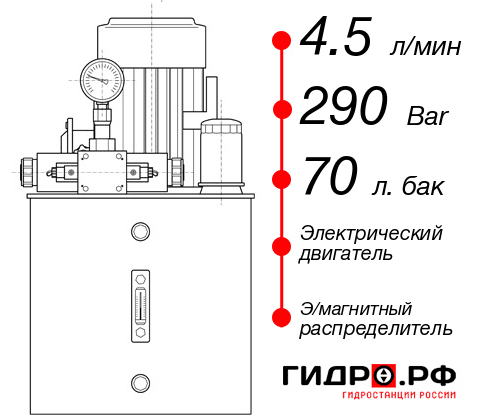 Маслостанция НЭЭ-4,5И297Т с давлением 290 атм и подачей 4.5 л/мин. Установлен масляный бак на 70 литров и электрический силовой агрегат. Распределитель э/магнитный. Срок производства до 1 дней. Цена с доставкой до Вашего цеха в Великом Новгороде 93483 руб. Рекомендуем дооснастить: клапан обратный.