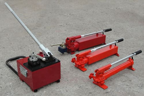 Ручная гидростанция (ручной насос) приводится в действие мускульной силой человека. Максимальное давление на выходе составляет от 100 до 1500 бар, объем подачи от 5 до 40 см3 на двойной ход. Насосы используют для: опрессовки кабельных наконечников, гибки, высечки резки токоведущих шин и мелаллических профилей, опрессовки на герметичнось, съема и запрессовки подшипников, подъема домкратом нагрузки. Автономная ручная маслостанция имеет небольшие габариты и вес, представляет собой гидравлический бак 0,4 - 20 литров с плунжерным качающим блоком. Помимо низкой стоимости можно отметить главное достоинство ручного насоса - безопасность работы во взрывоопасной зоне.